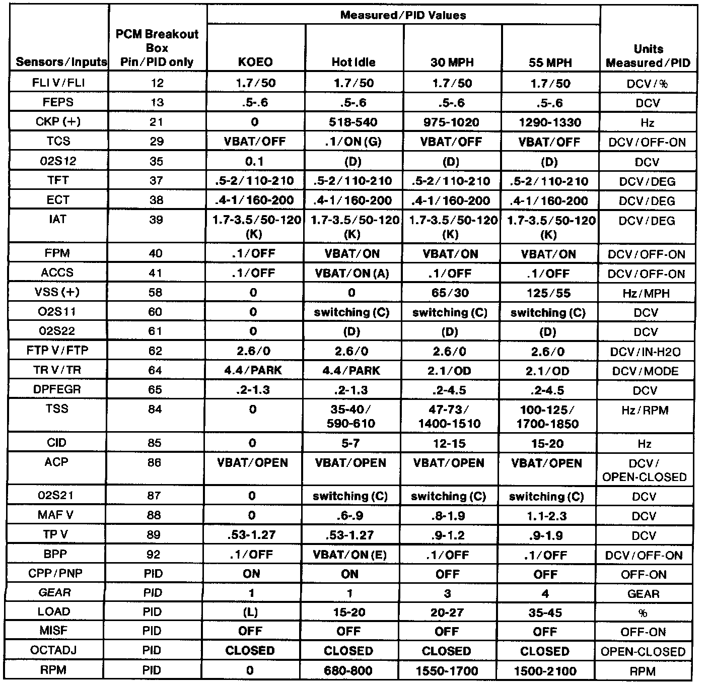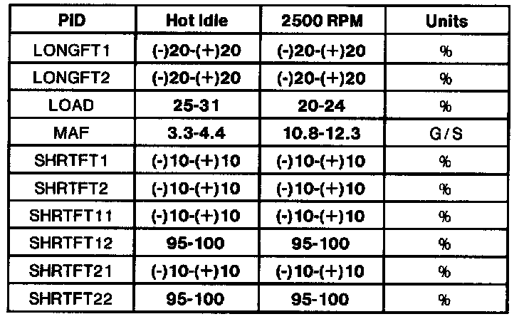 - All generic OBD II readings under no load (PARK or NEUTRAL).