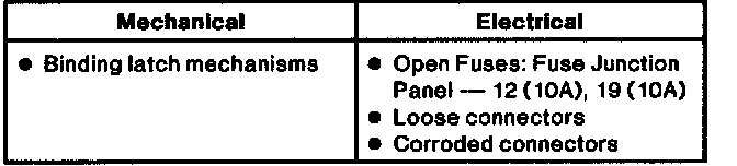 3. Check for mechanical binds in the door locks. Operate all door locks several times and check lock operation. Also be sure the battery is fully charged.