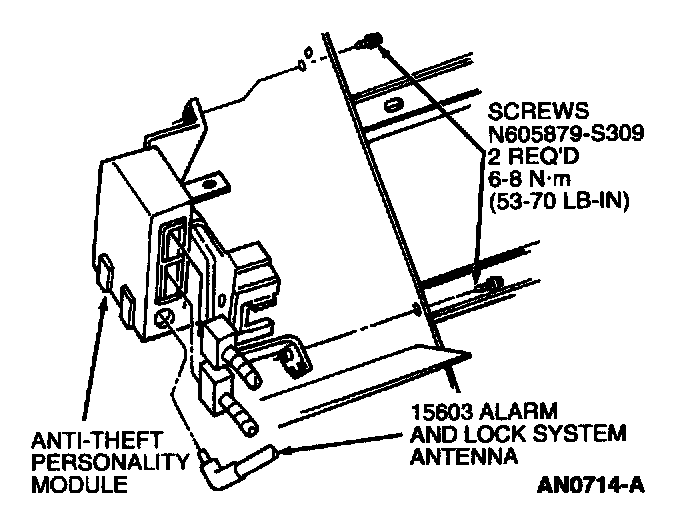 2. Tighten remote anti-theft personality module bracket retaining screws to 6-8 Nm (54-70 Lb-In).