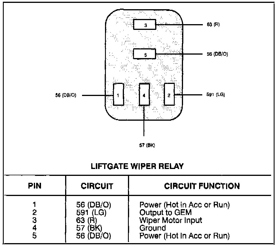 Liftgate Wiper Relay: