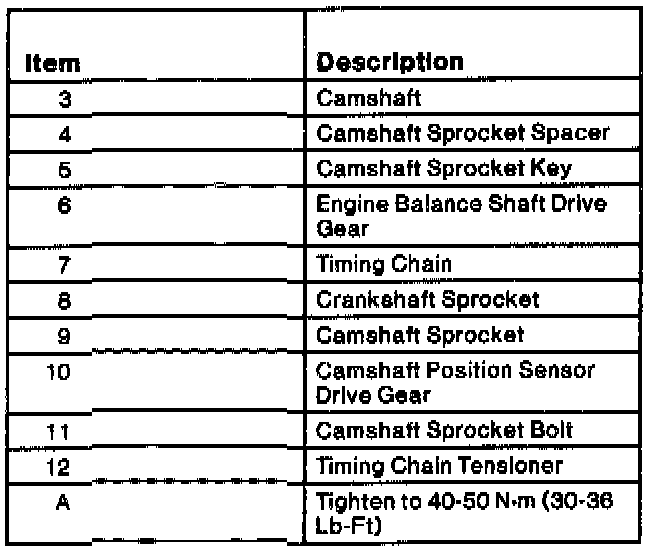 6. Install camshaft sprocket bolt at end of camshaft and tighten to 40-50 Nm (29-37 ft. lbs.).