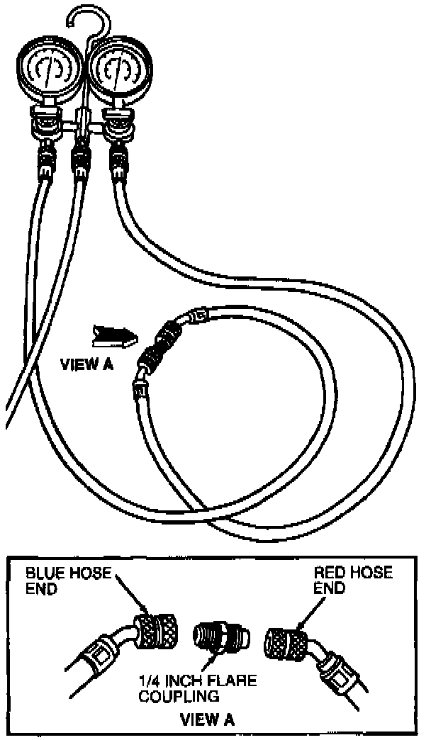 a. Connect the red and blue hoses together using a 1/4-inch flare coupling.