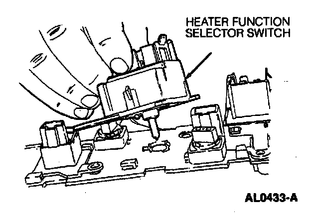 3. Disconnect electrical connector from potentiometer or electrical connector and vacuum hose harness from heater function selector switch.