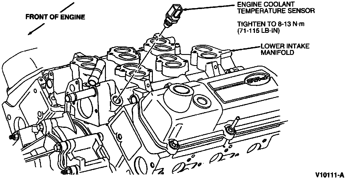 2. Tighten engine coolant temperature sensor to 8-13 Nm (71-115 lb in). Refill engine cooling system.