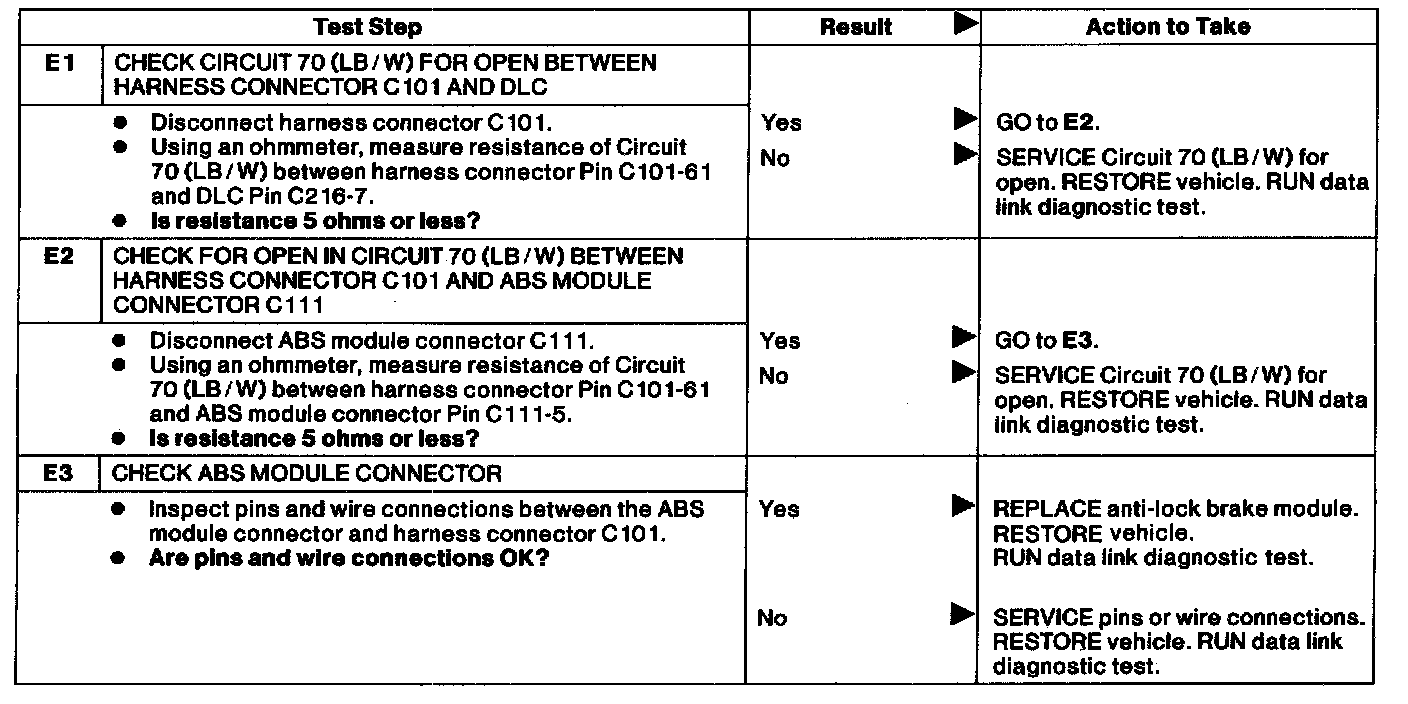E: Anti-Lock Brake System (ABS) Module Not Responding