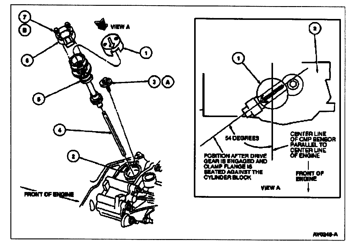 CAUTION: Prior to removal of the camshaft position sensor (CMP sensor), set cylinder No.1 to 0° top dead center (TDC) of compression stroke. Then note the position of the camshaft position sensor electrical connector. The installation procedure requires the connector be located In the same position.