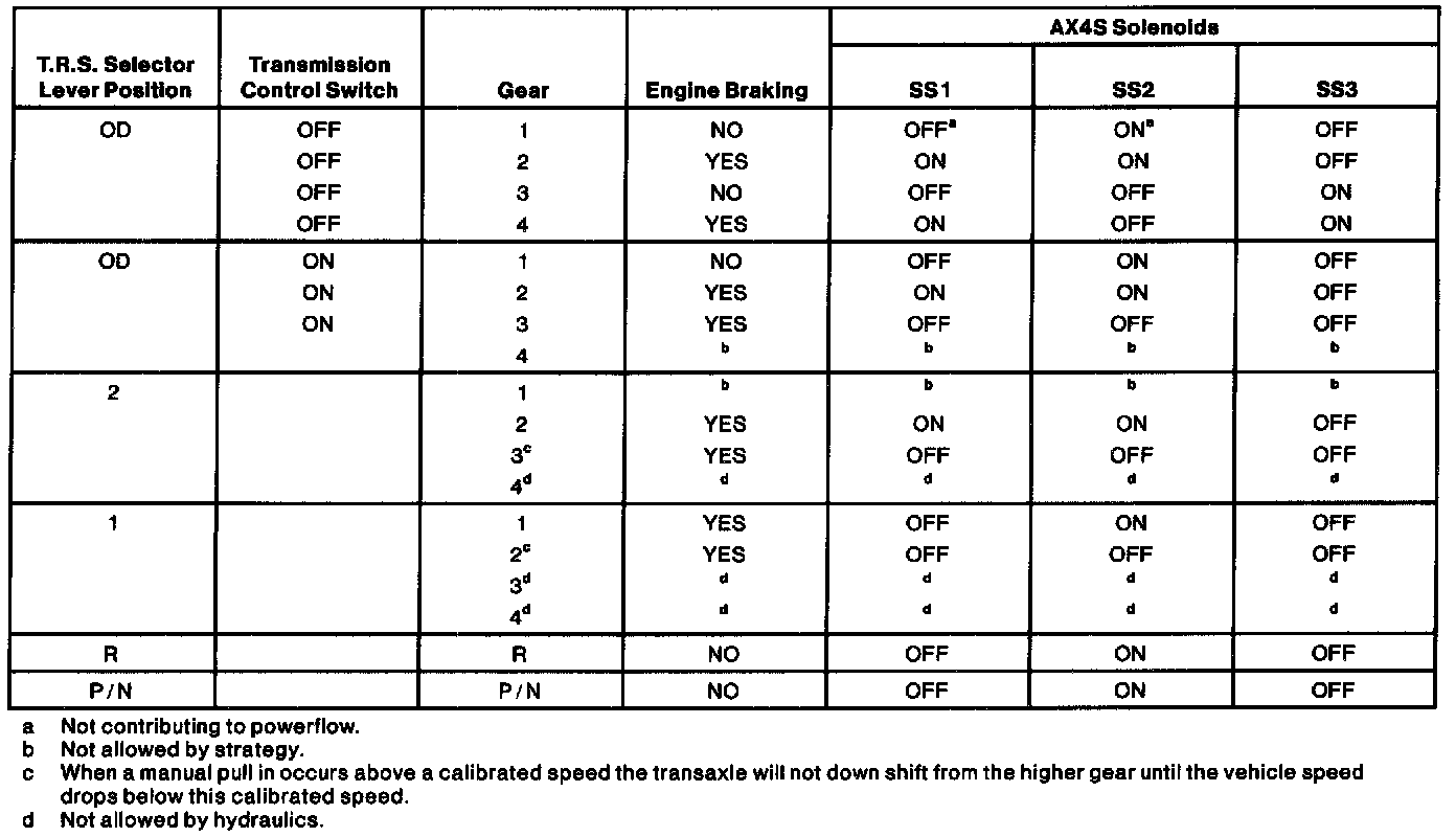 The shift solenoid operation chart shows normal