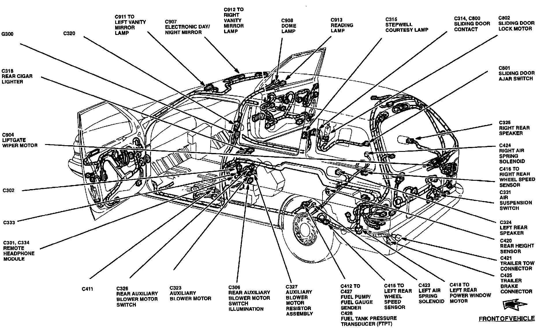 The Remote Headphone Control Module is located behind panel, left of rear seat.