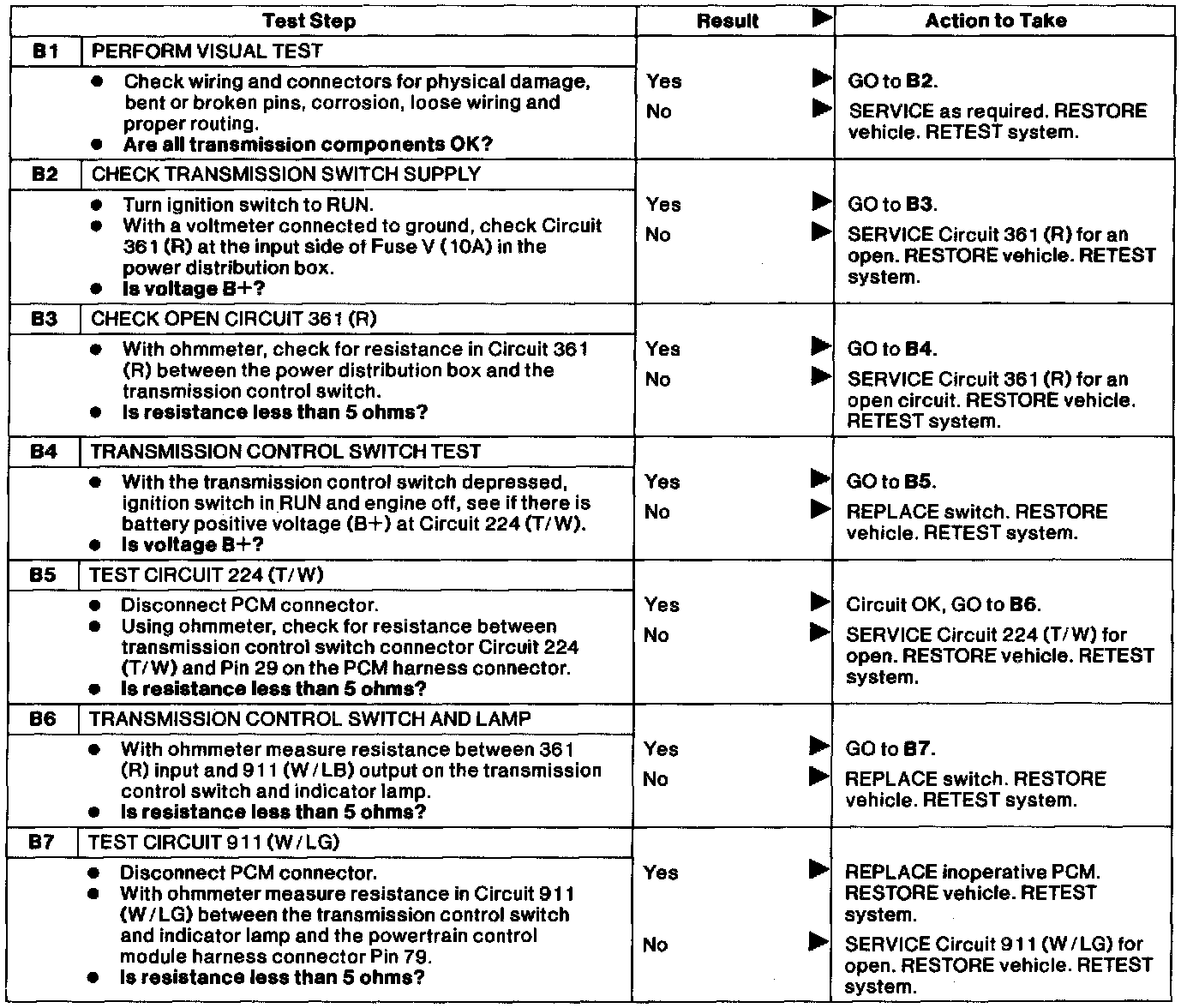 B: Transmission Control Switch Not Operating Properly