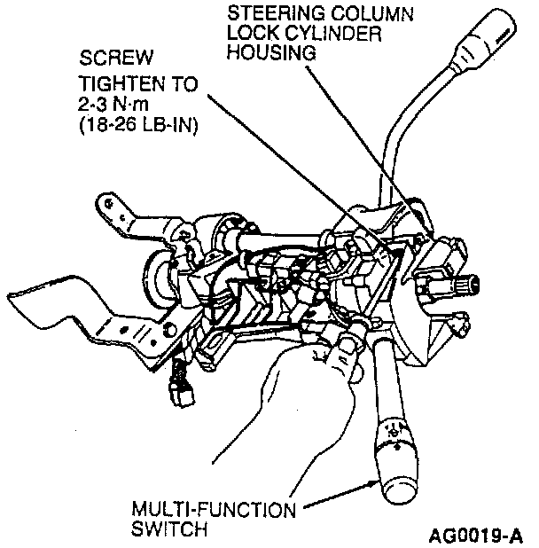 6. Remove two self-tapping screws that attach the multi-function switch to the steering column tube casting. Disengage multi-function switch from casting.