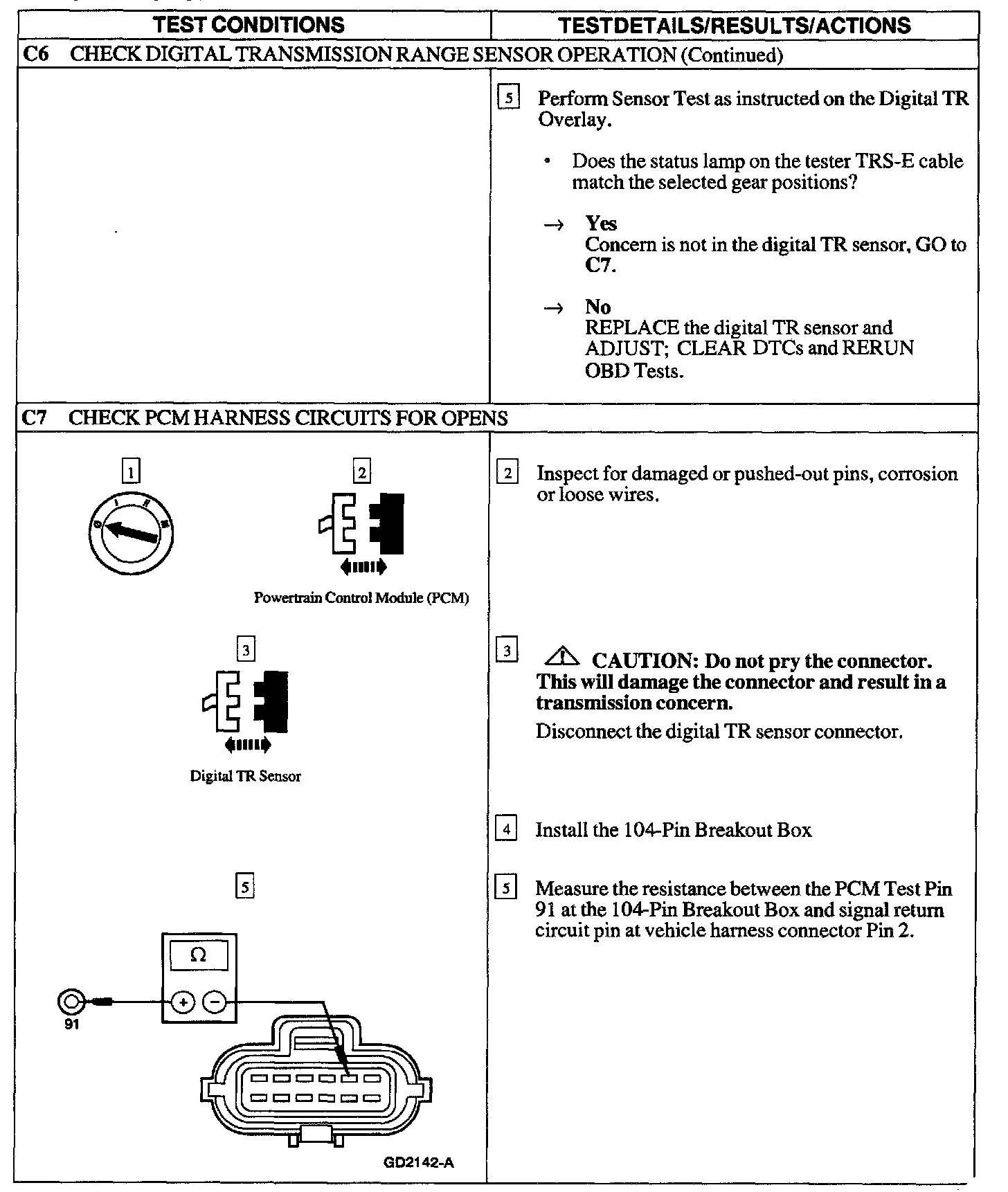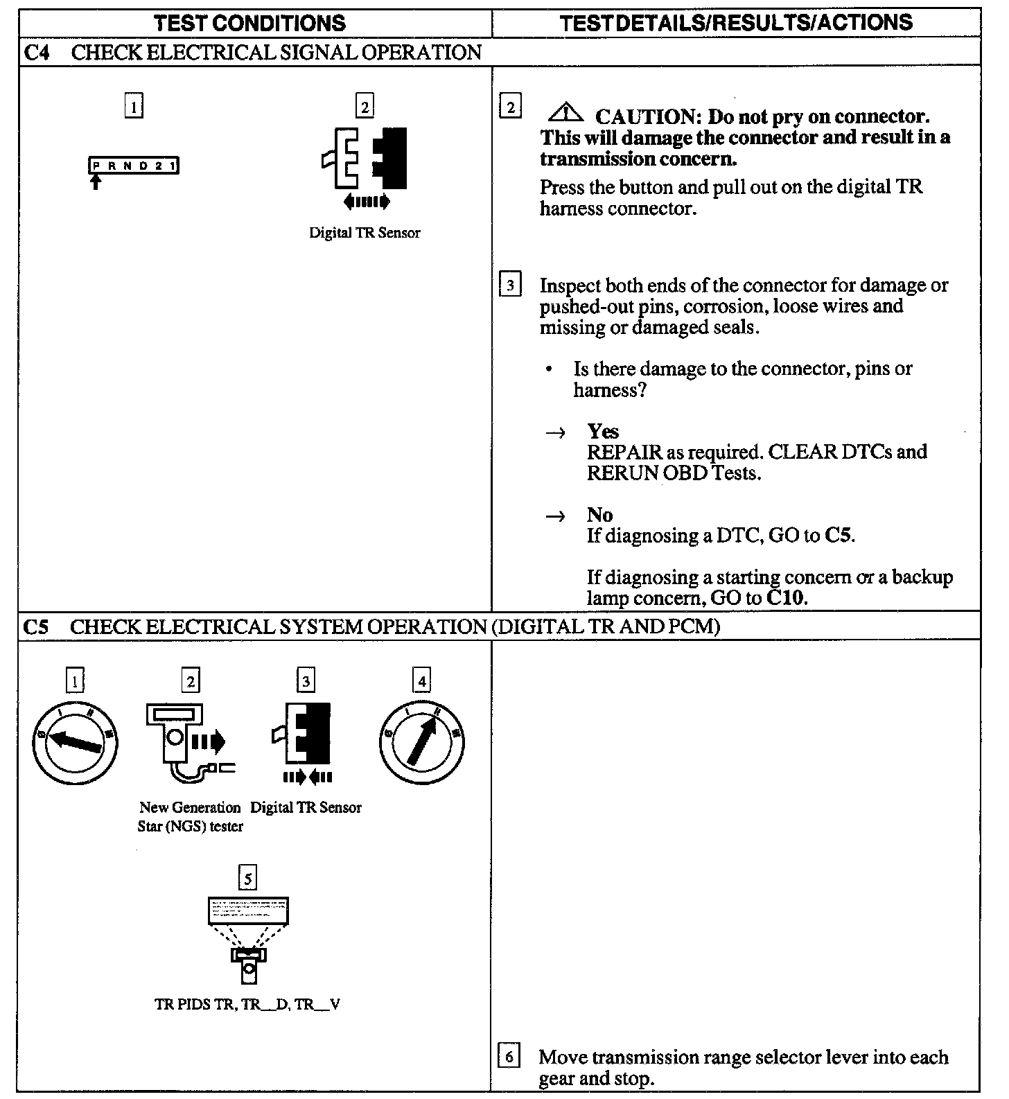 PIN POINT TEST C: DIGITAL TRANSMISSION RANGE (TR) SENSOR