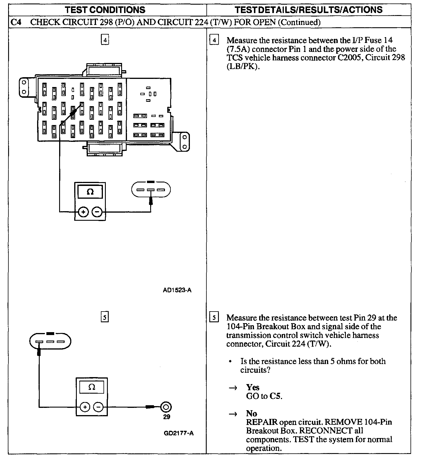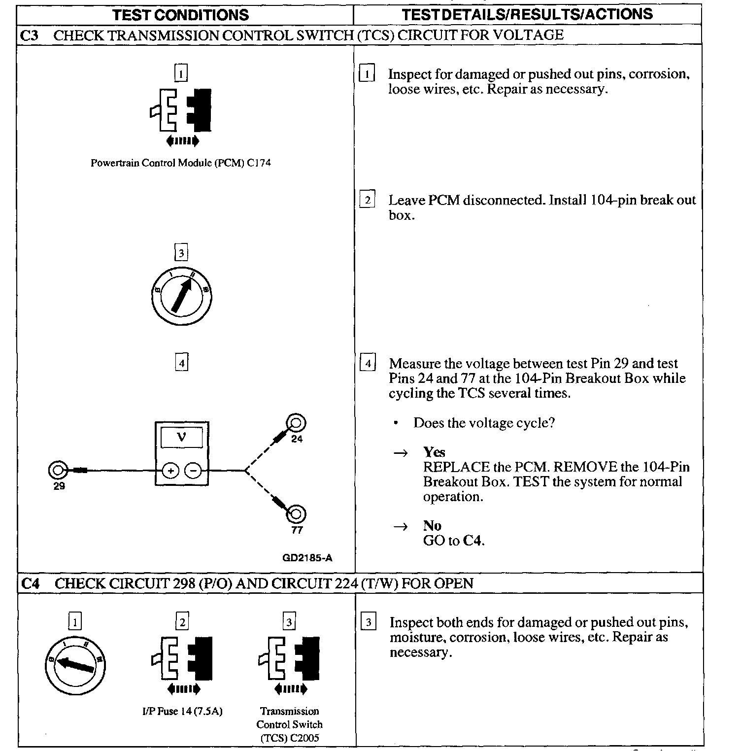 Pinpoint Test C: The Transmission Control Switch (TCS) Is Inoperative