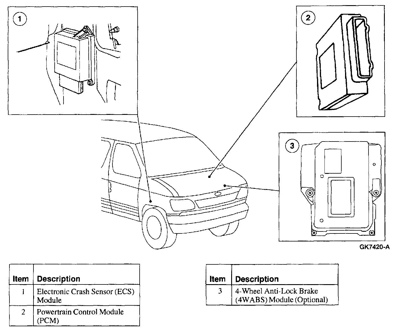 The Electronic Crash Sensor (ECS) module is on the ISO 9141 network. The ECS controls the deployment of the air bags based on sensor input.