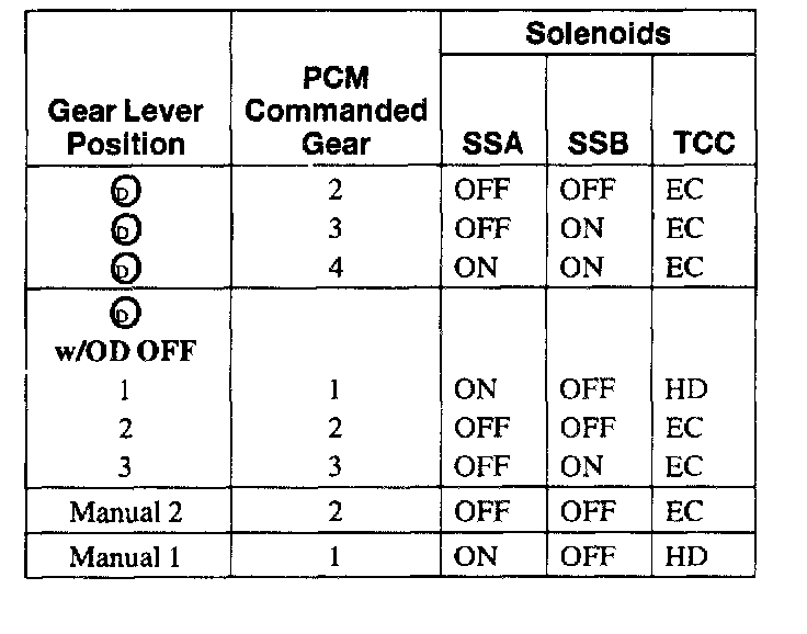 Use the following shift solenoid operation information when performing Pinpoint Test A.Solenoid Operation Chart