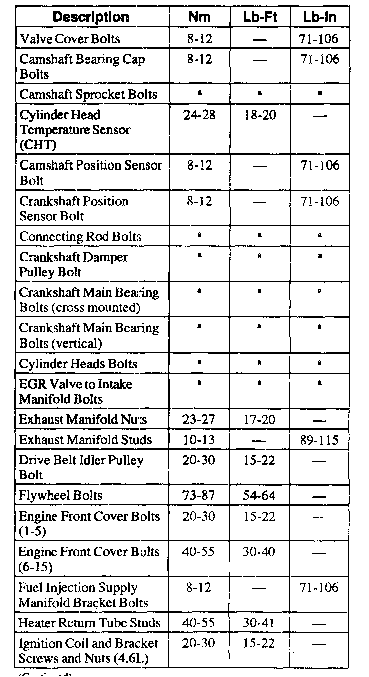 Refer to the applicable Service and Repair procedure for torque specification and/or sequence.