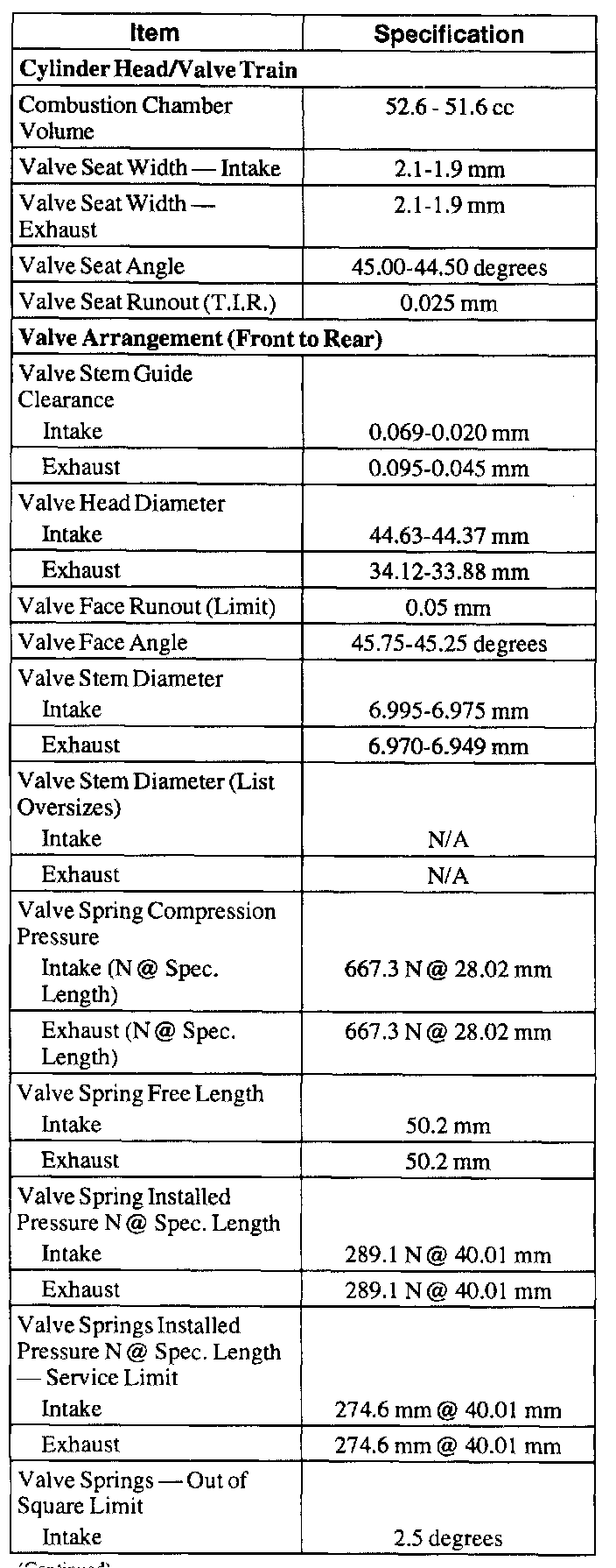 General SpecificationsCylinder Head Tightening Procedure