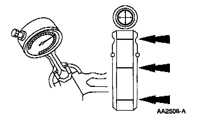 1. Measure the inner diameter of the valve guides in two directions where indicated.