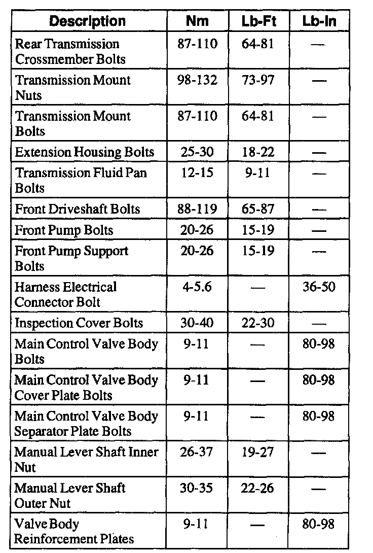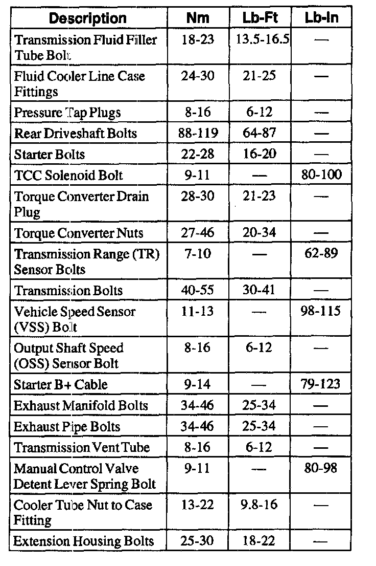 Torque Specifications