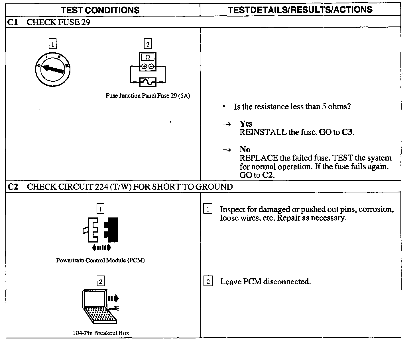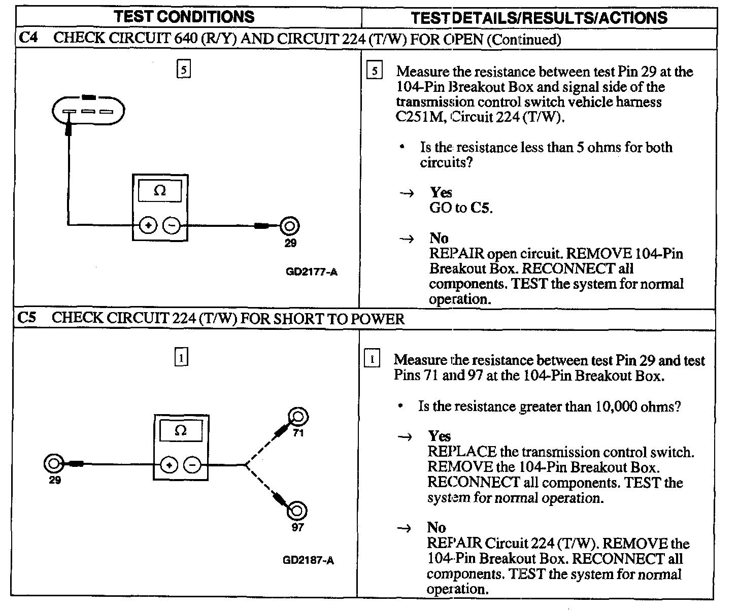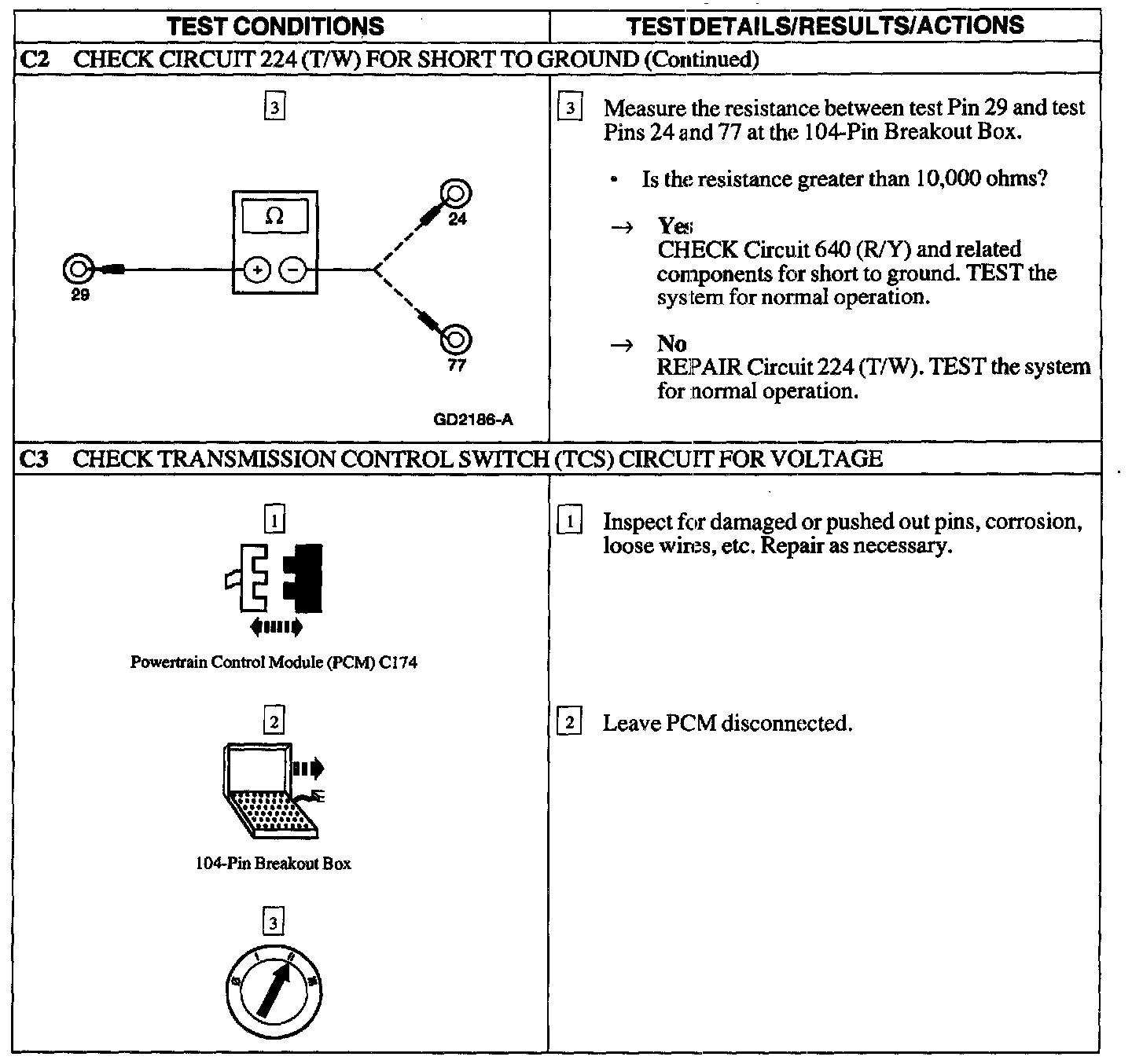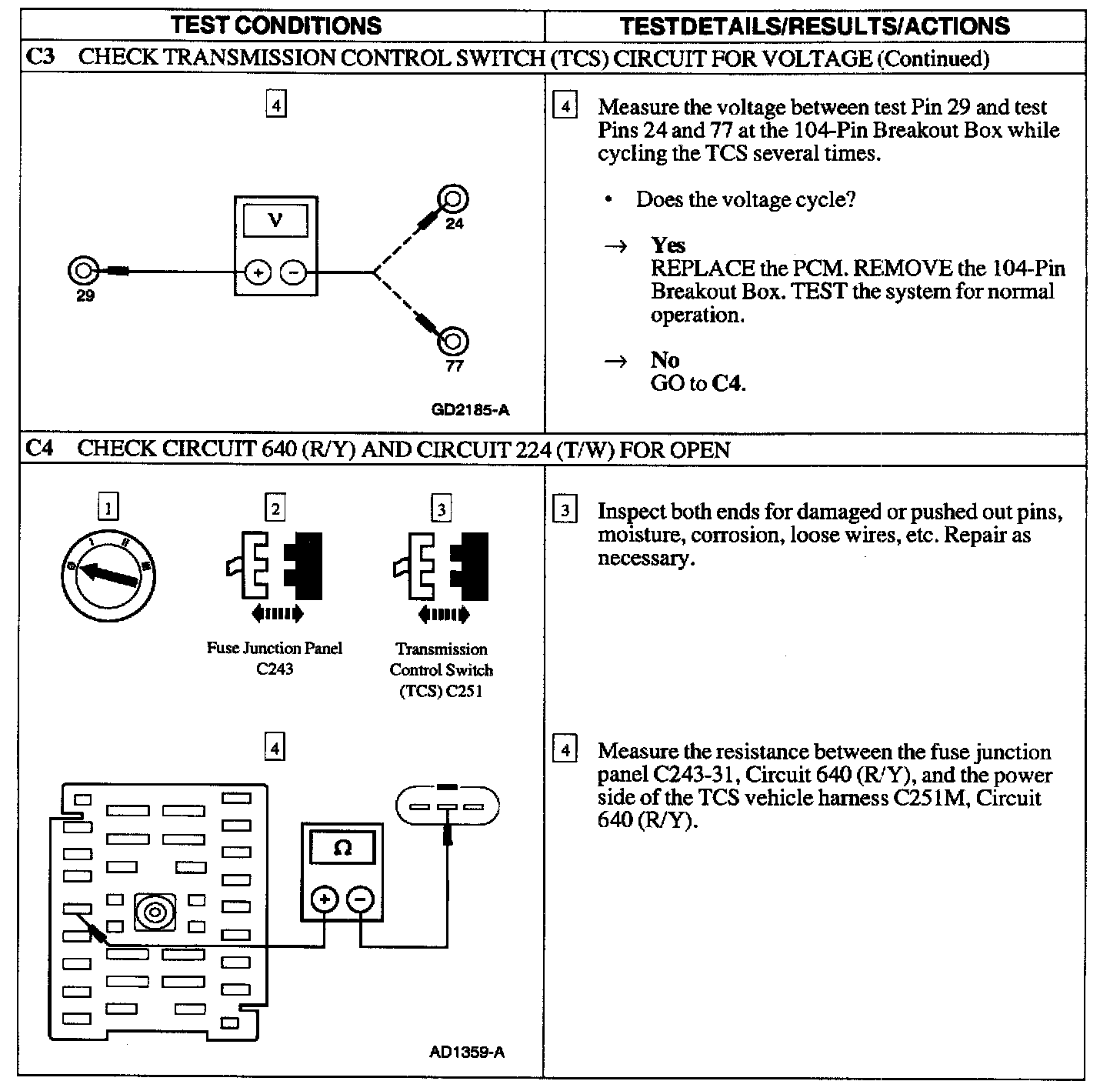 PINPOINT TEST C: THE TRANSMISSION CONTROL SWITCH (TCS) IS INOPERATIVE