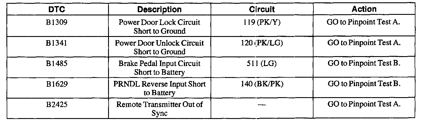 Remote Anti-Theft Module Diagnostic Trouble Code (DTC) Index