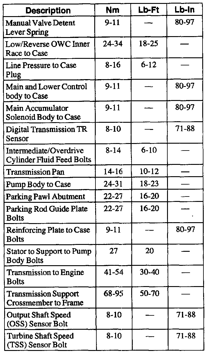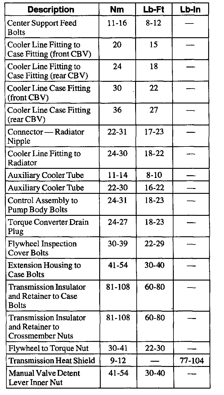 Torque Specifications