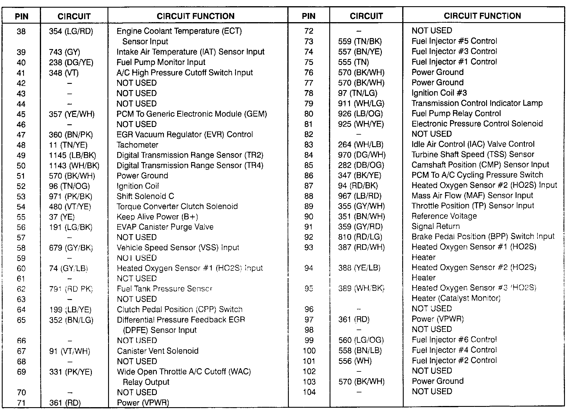 Explorer 2WD V6-245 4.0L VIN X SFI