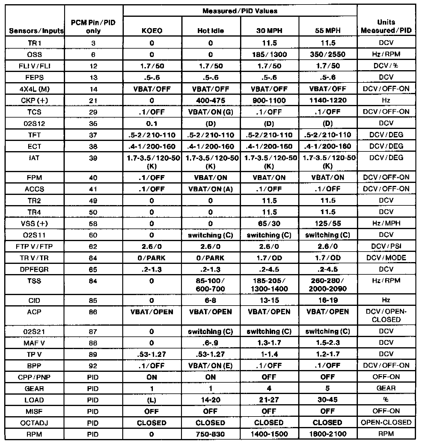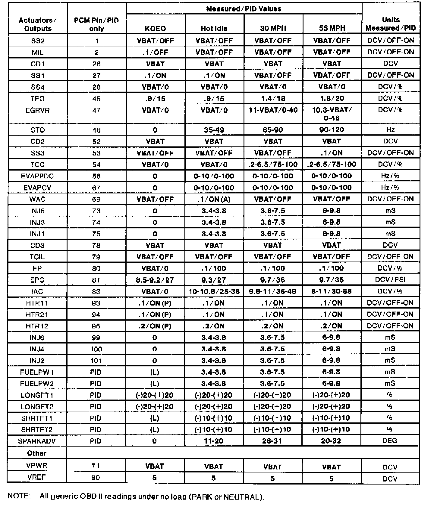 - The Typical Diagnostic Reference Value Charts do not display fault PIDs. These are PIDs which indicate a hard fault with the circuit. They display a value of "YES" or "NO" and are PIDs ending with an "F".