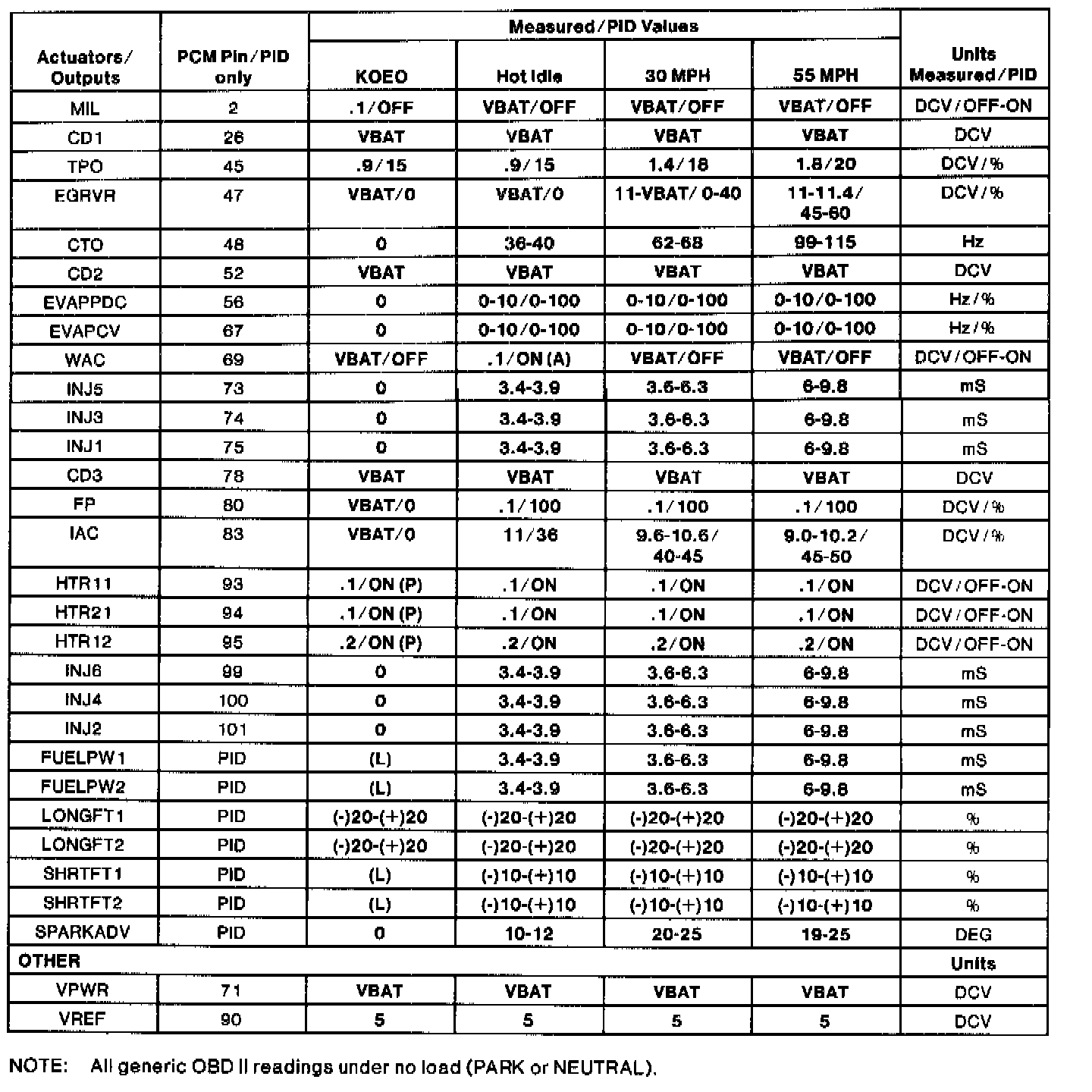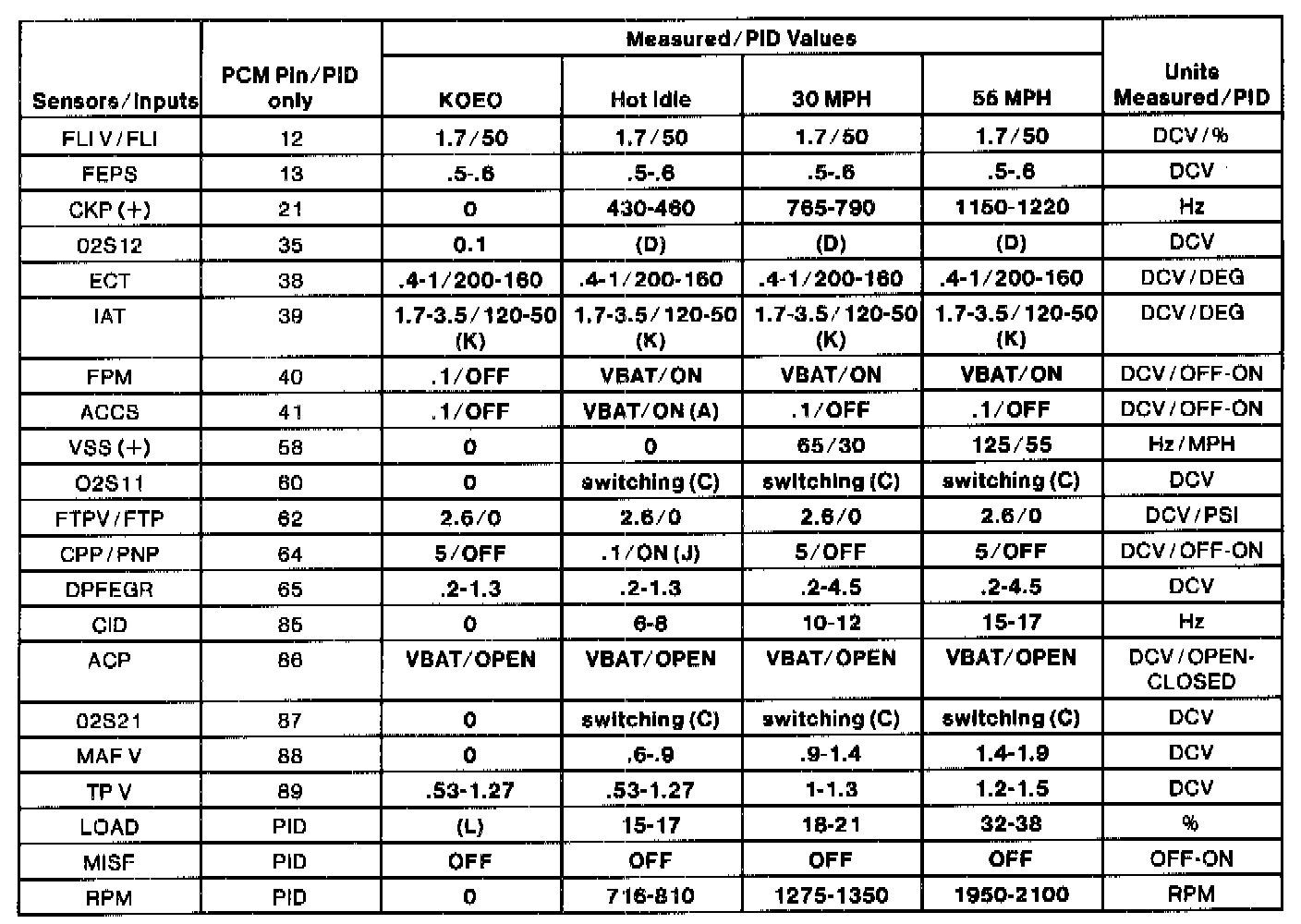 - The Typical Diagnostic Reference Value Charts do not display fault PIDs. These are PIDs which indicate a hard fault with the circuit. They display a value of "YES" or "NO" and are PIDs ending with an "F".