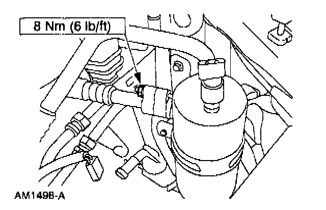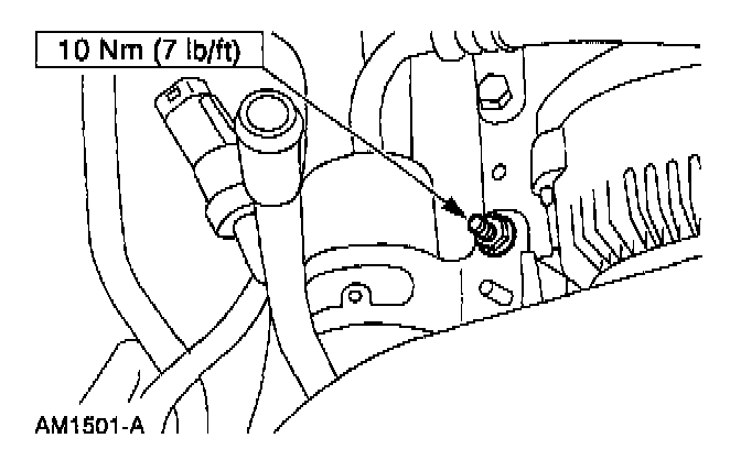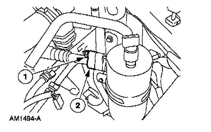 - Apply Pipe Sealant with Teflon (R) D8AZ-19554-A or equivalent meeting Ford specifications WSK-M2G350-A2 and ESR-M18P7-A to the threads of the A/C manifold retaining bolt.