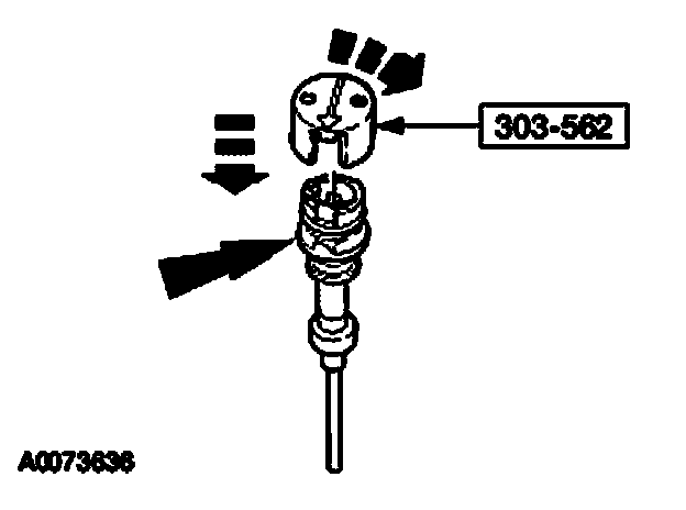 Install the special tool on the camshaft synchronizer by rotating the tool until it engages the notch in the camshaft synchronizer housing.