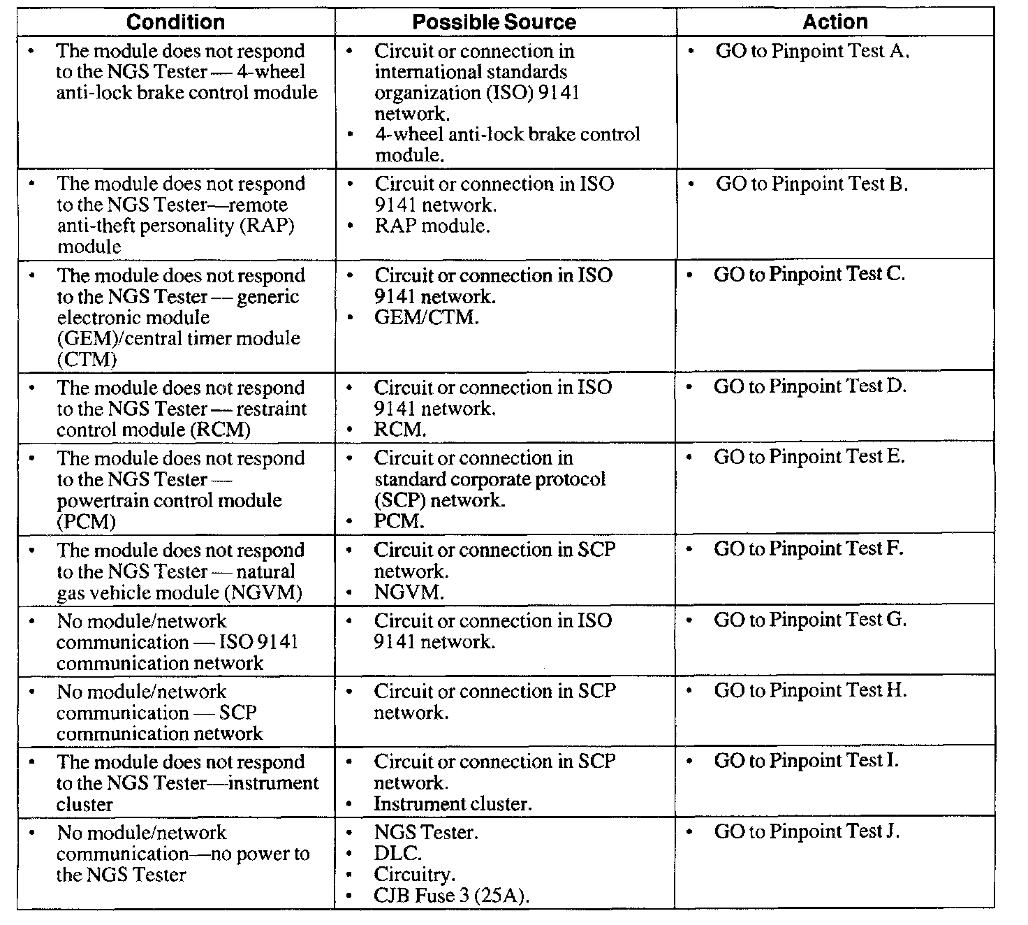 Pinout Values and Diagnostic Parameters