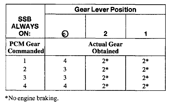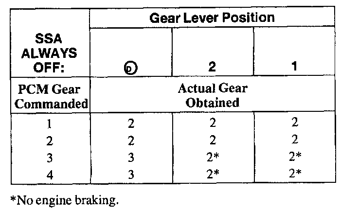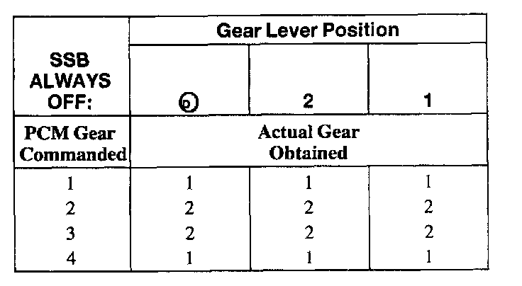 SHIFT SOLENOID FAILURE MODE CHART "ALWAYS OFF"