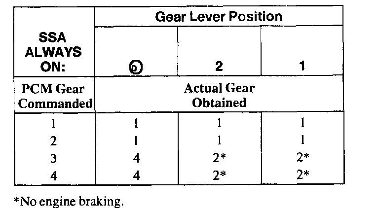 SHIFT SOLENOID FAILURE MODE CHART "ALWAYS ON"