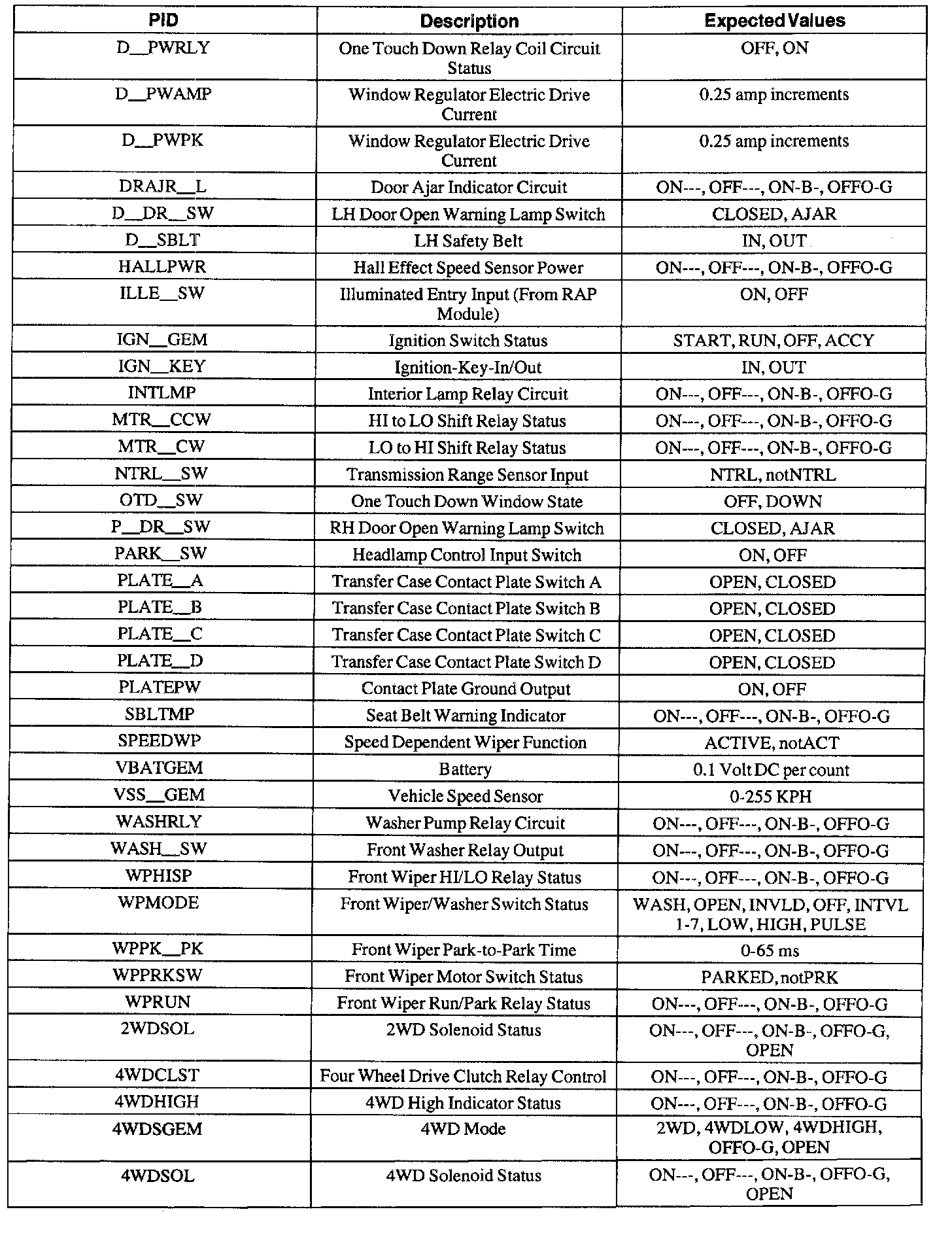 Diagnostic Trouble Code Descriptions