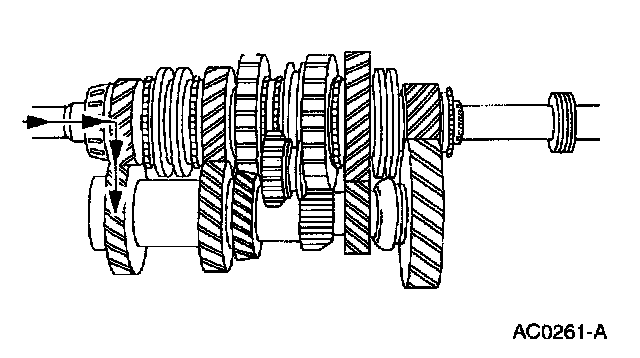 ^ When the synchronizer sleeve is shifted forward, the 5th gear is engaged to the countershaft.