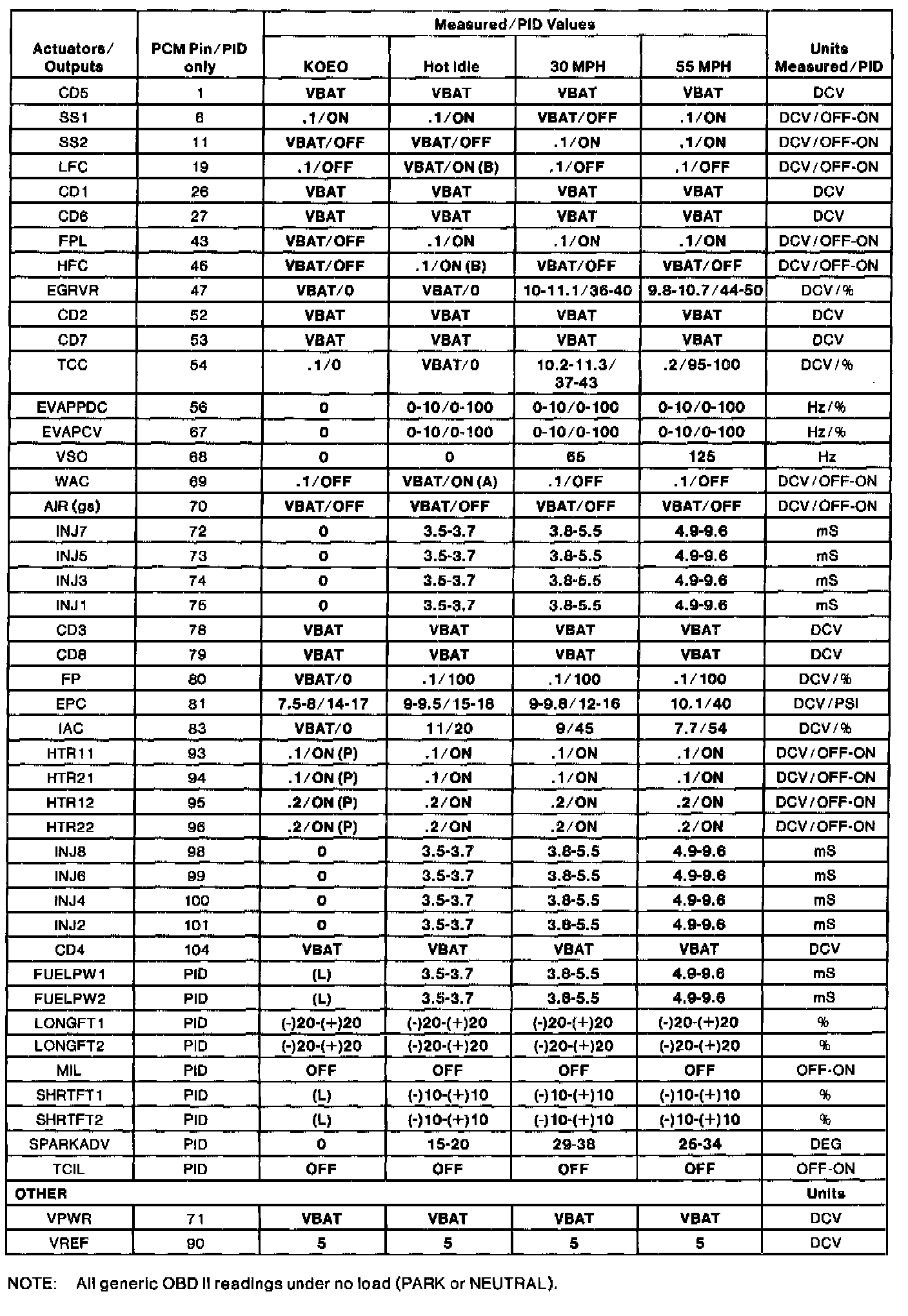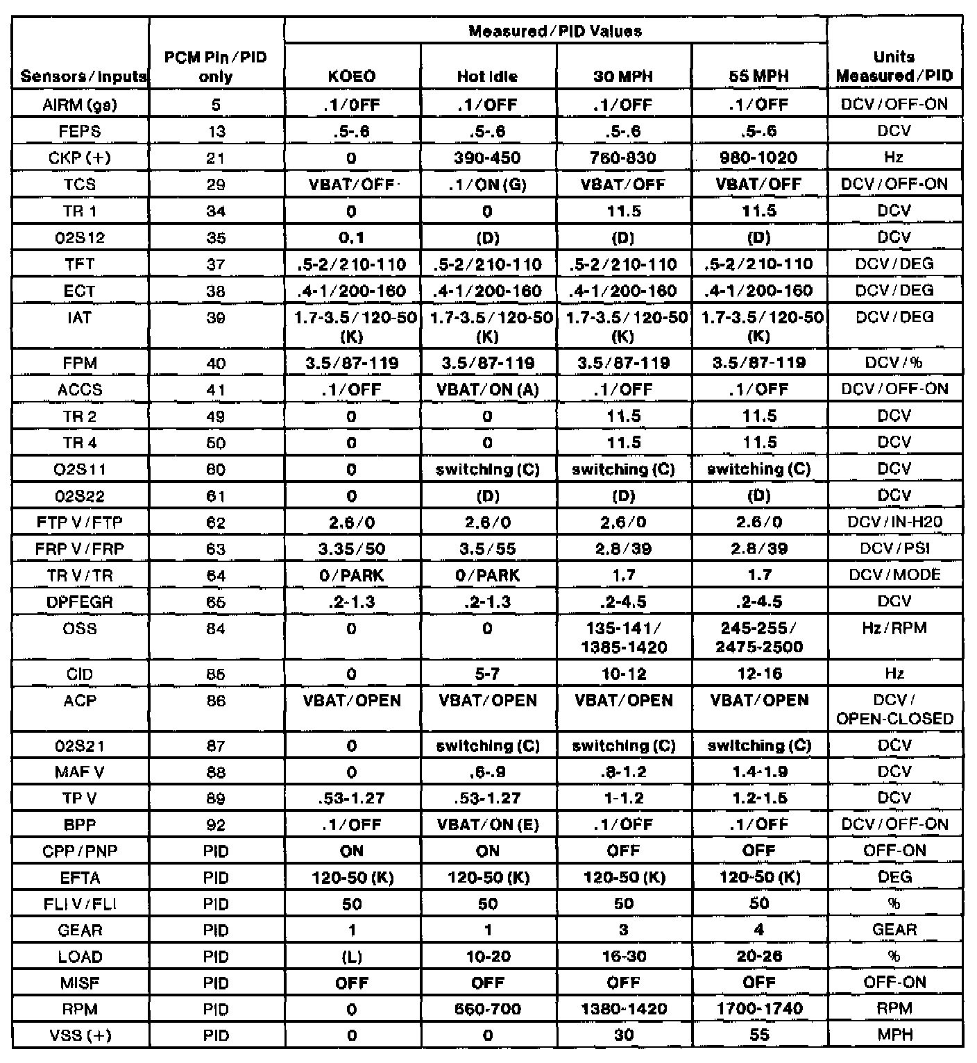 - The Typical Diagnostic Reference Value Charts do not display fault PIDs. These are PIDs which indicate a hard fault with the circuit. They display a value of "YES" or "NO" and are PIDs ending with an "F".