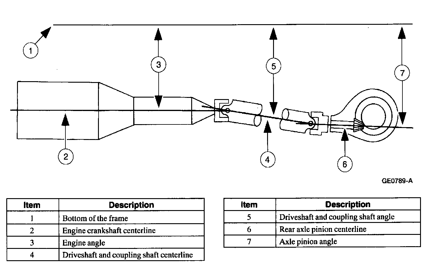 ^ A vibration during coastdown from 72 to 56 km/h (45 to 35 mph) is often caused by an excessive U joint angle at the axle (pinion nose downward).