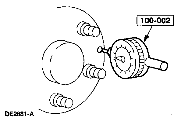 1. Position the special tool on the wheel hub or axle flange face, as close to the outer edge as possible. Zero the indicator to allow the pointer to deflect either way.