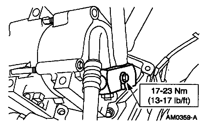 - Apply Pipe Sealant with Teflon (R) D8AZ-19554-A or equivalent meeting Ford specifications WSK-M2G340-A2 and ESR-M18P7-A to the threads of the A/C manifold retaining bolt.