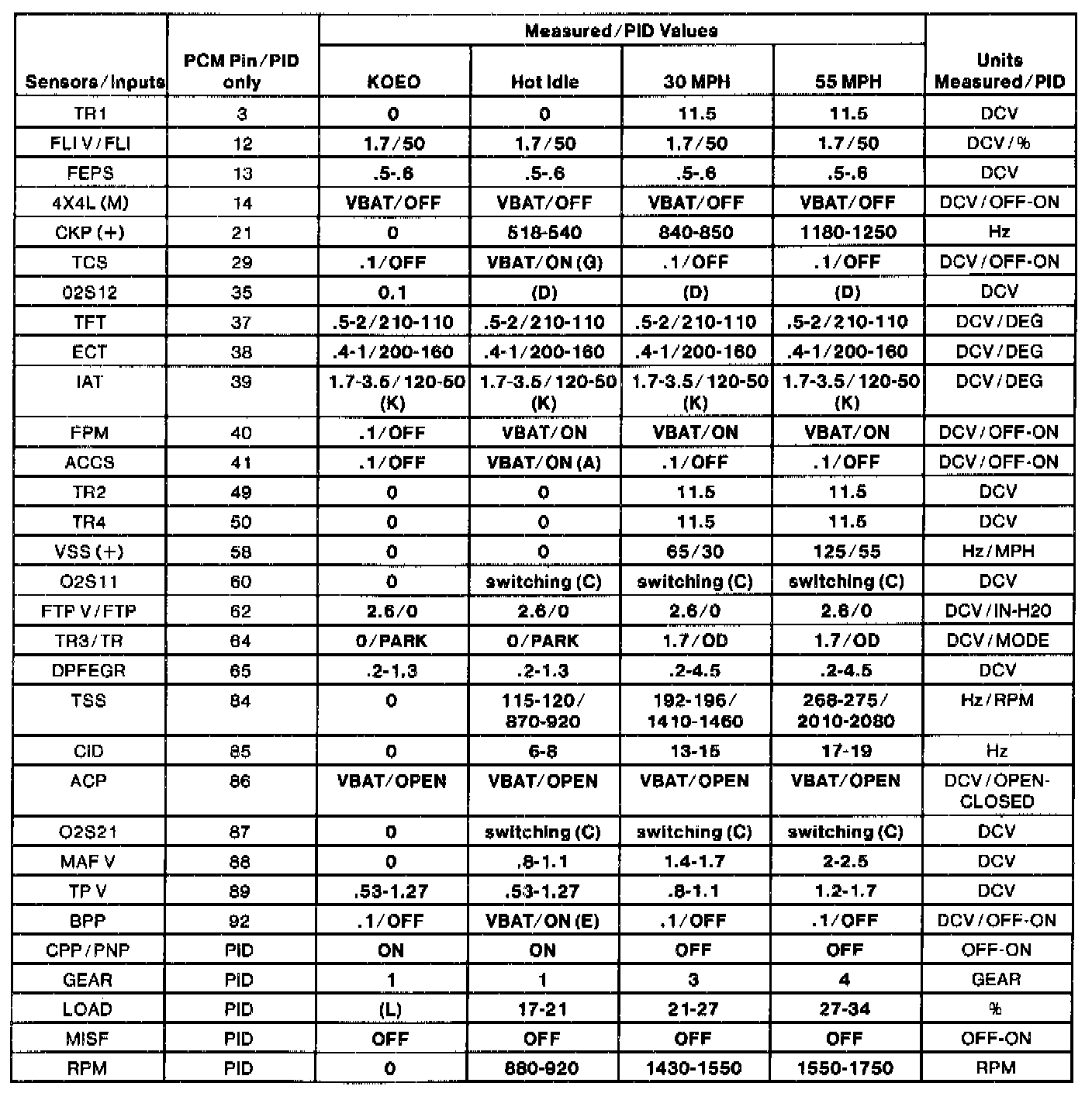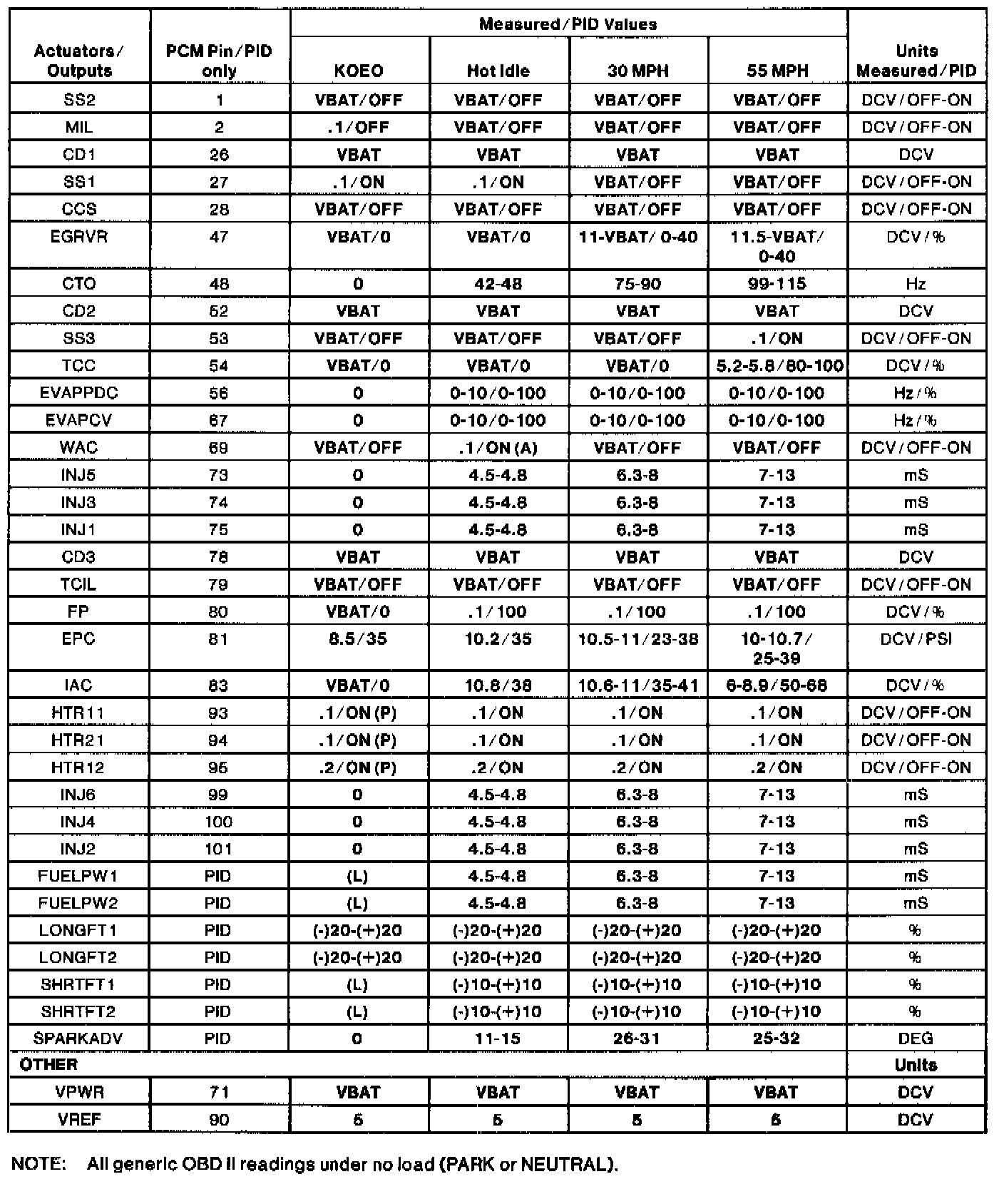 - The Typical Diagnostic Reference Value Charts do not display fault PIDs. These are PIDs which indicate a hard fault with the circuit. They display a value of "YES" or "NO" and are PIDs ending with an "F".