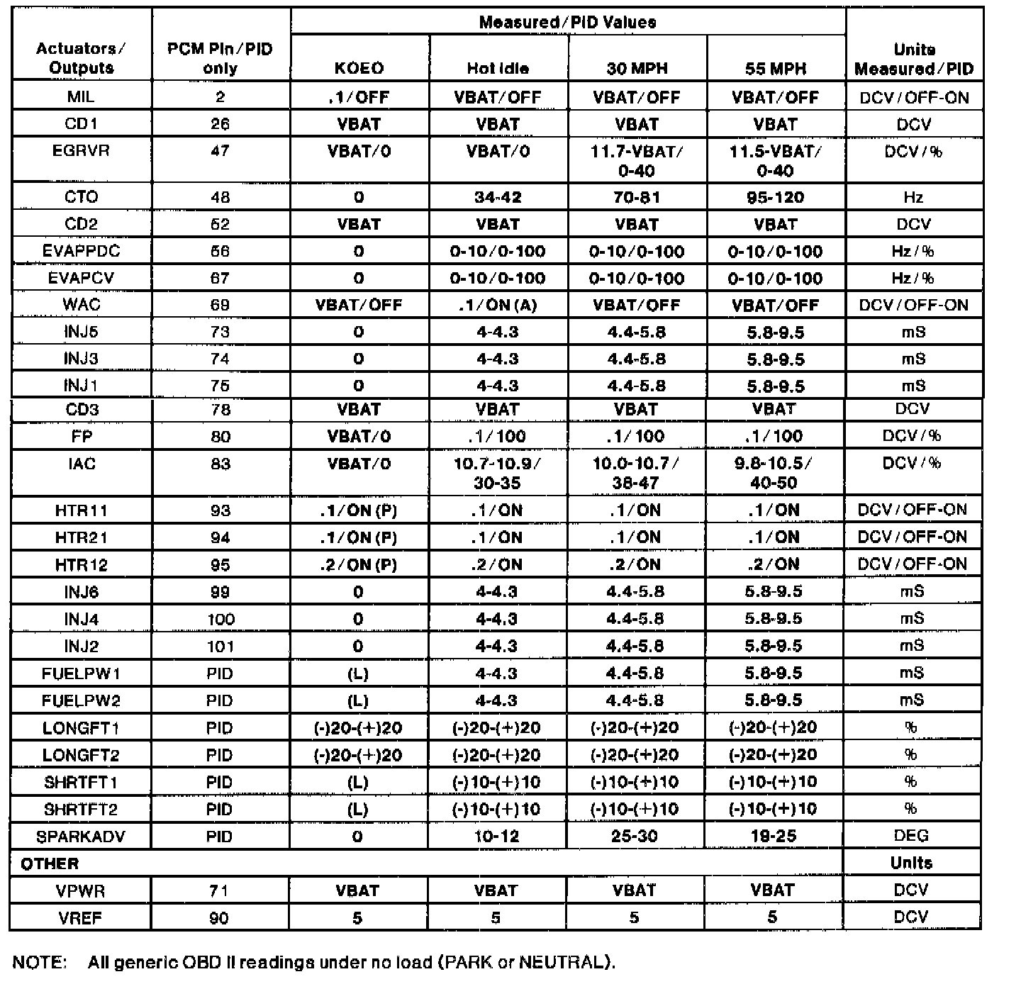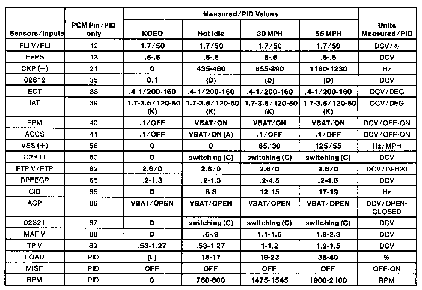 - The Typical Diagnostic Reference Value Charts do not display fault PIDs. These are PIDs which indicate a hard fault with the circuit. They display a value of "YES" or "NO" and are PIDs ending with an "F".