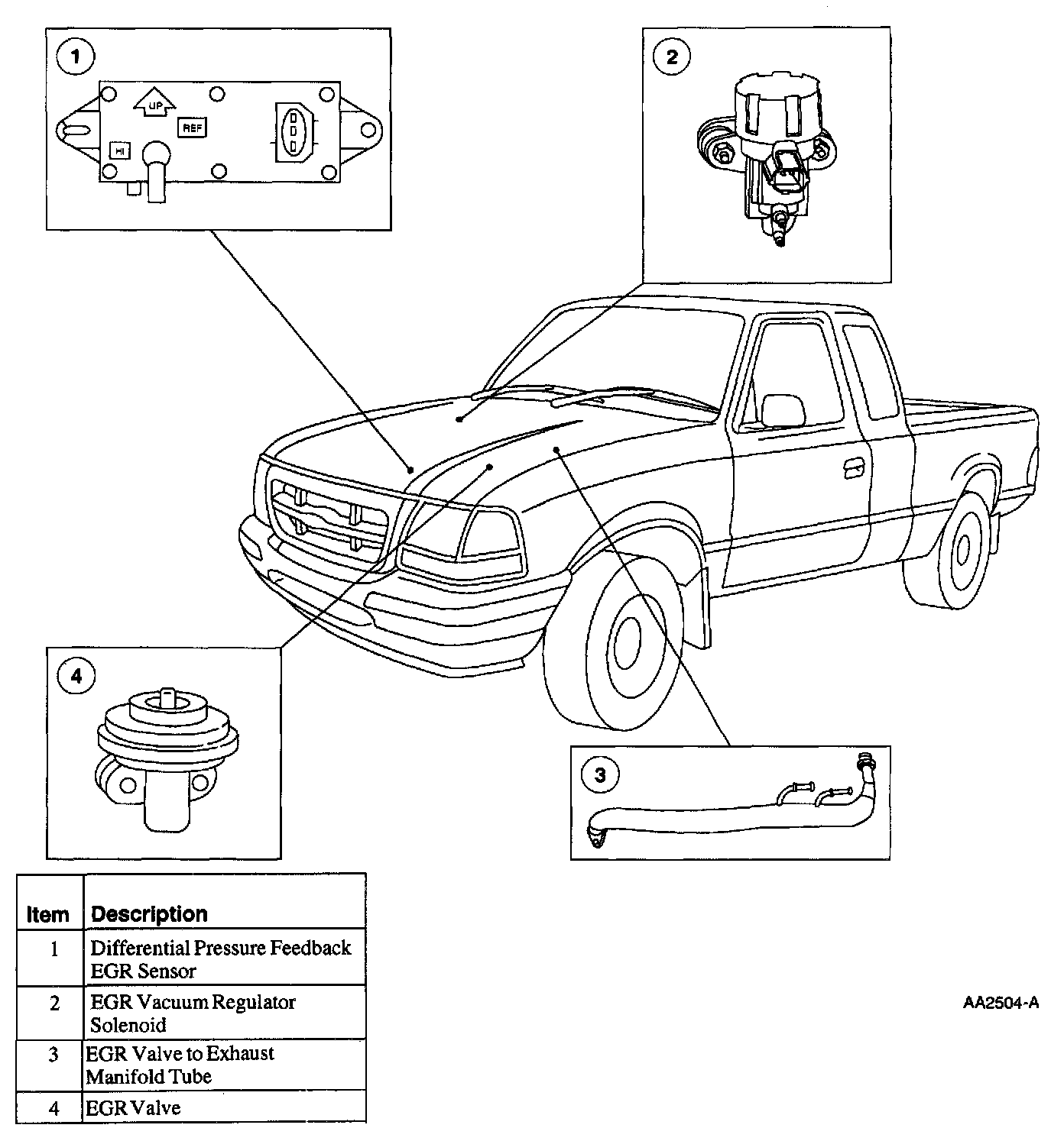The Powertrain Control Module (PCM) controls the FOR vacuum regulator solenoid. The FOR vacuum regulator solenoid controls the vacuum to the FOR valve. When the EGR valve opens, exhaust gas flows to the intake manifold to be returned to the combustion cycle. The differential pressure feedback FOR sensor monitors the flow and returns a signal to the Powertrain Control Module (PCM).