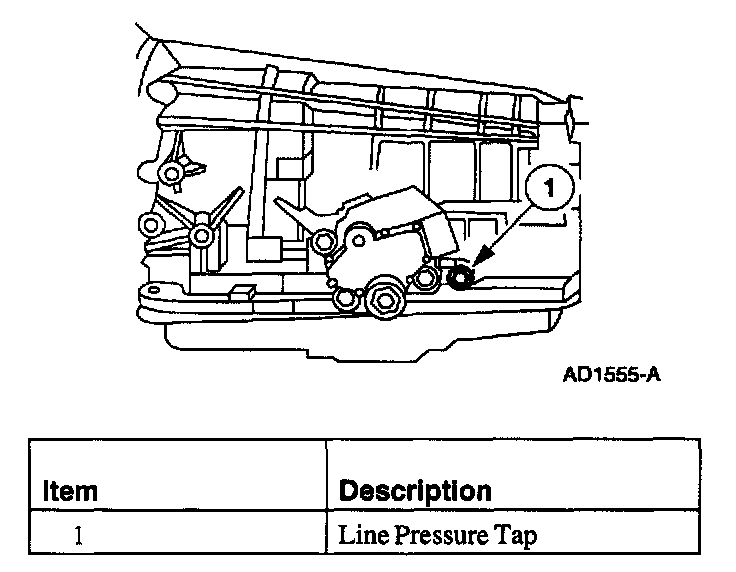 1. Connect pressure gauge to the line pressure tap on the transmission and a tachometer to the engine.
