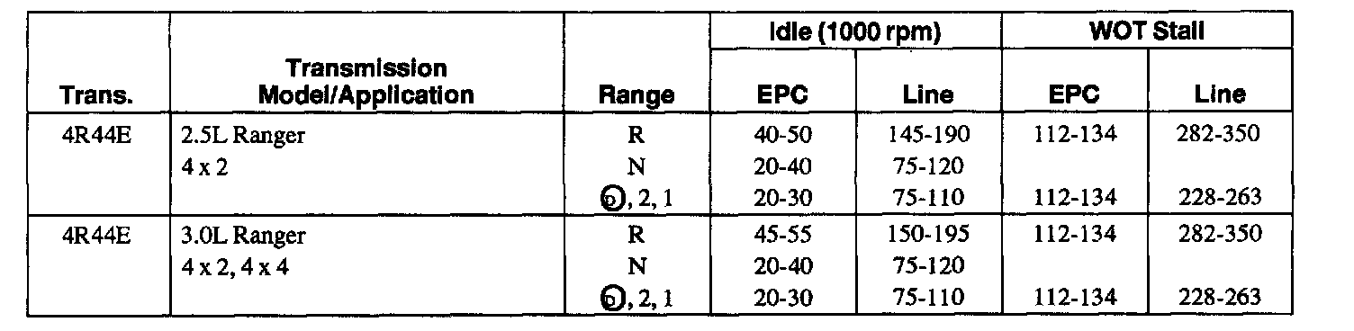 5. Start the engine, increase and maintain 1000 engine rpm and check EPC pressure, refer to the line pressure specification.