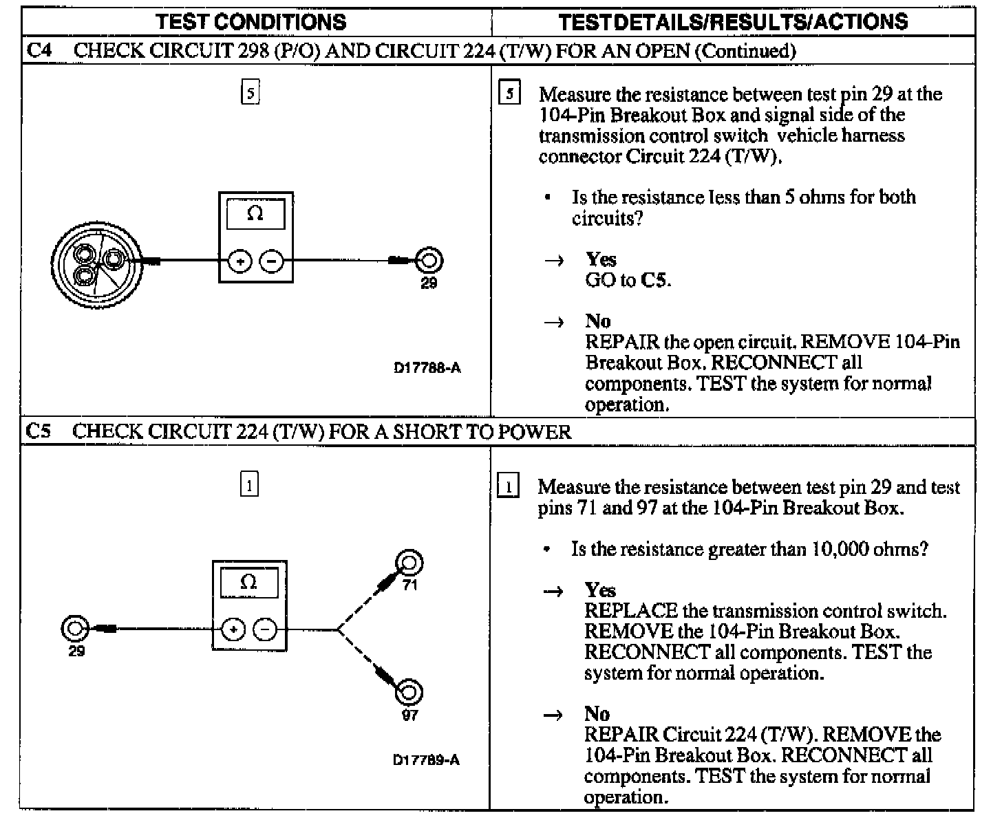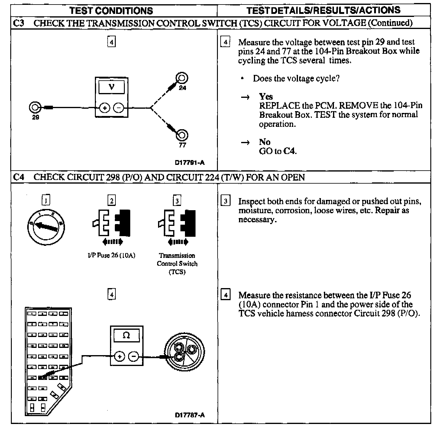 PINPOINT TEST C: THE TRANSMISSION CONTROL SWITCH IS NOT OPERATING PROPERLY