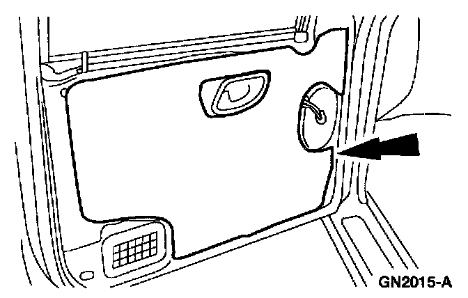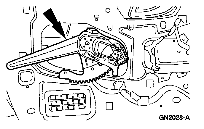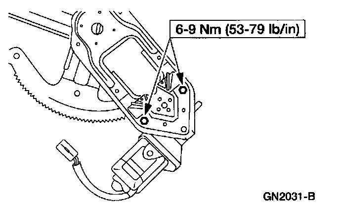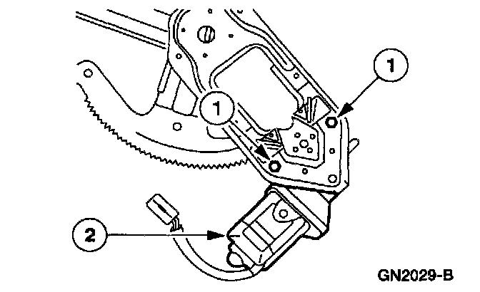 WARNING: PRIOR TO THE POWER WINDOW MOTOR REMOVAL, ENSURE THE REGULATOR ARMS ARE IN A FIXED POSITION TO PREVENT COUNTERBALANCE SPRING UNWIND. FAILURE TO PLACE THE REGULATOR ARMS IN A FIXED POSITION CAN CAUSE THE SPRING TO SUDDENLY RELEASE RESULTING IN PERSONAL INJURY.