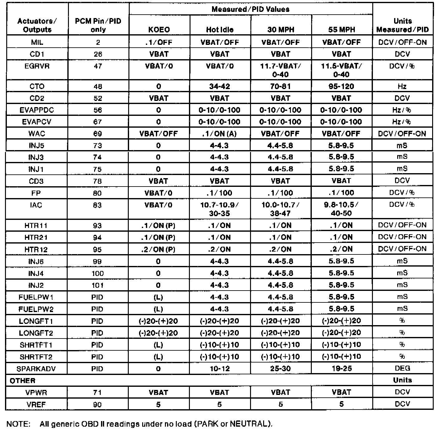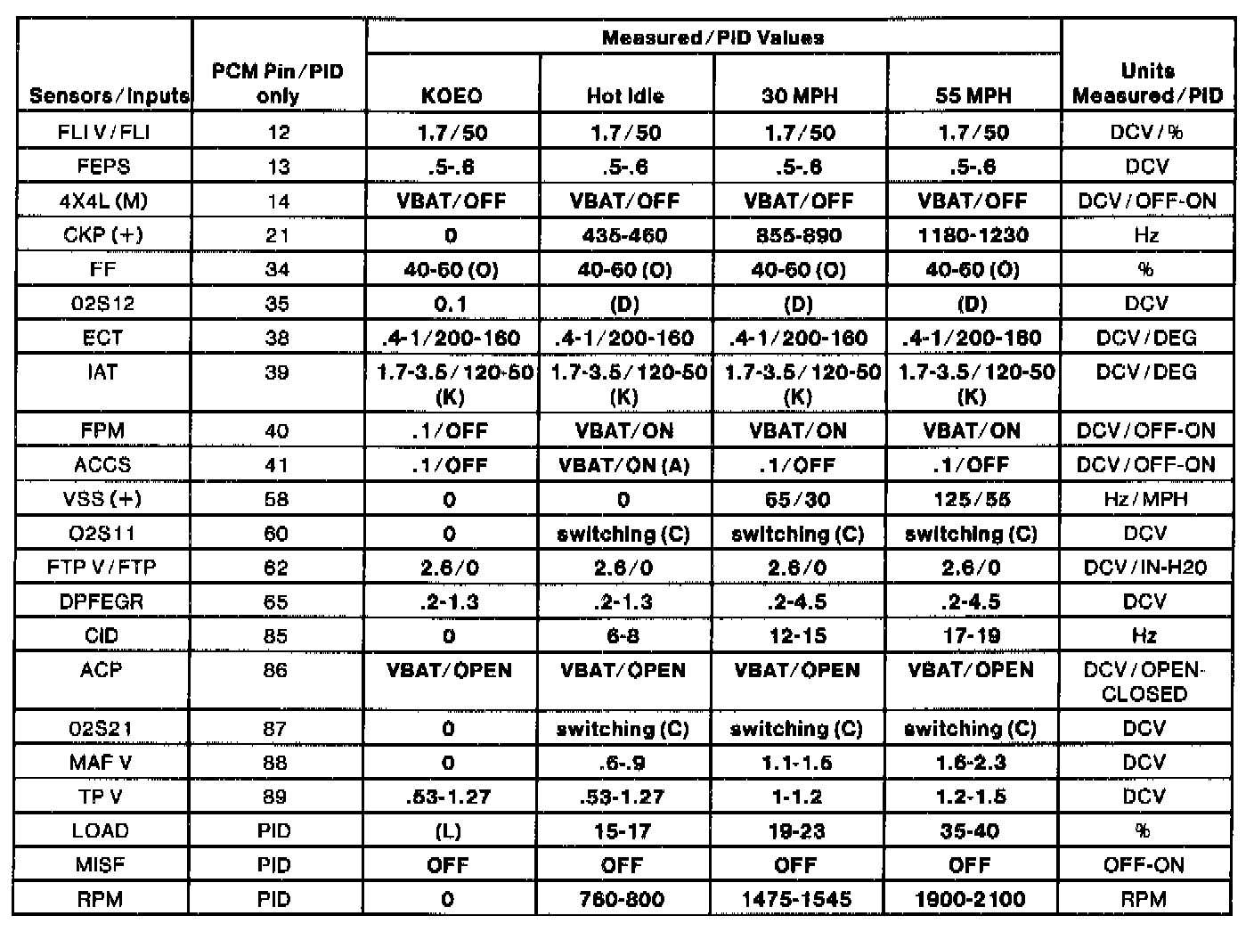 - The Typical Diagnostic Reference Value Charts do not display fault PIDs. These are PIDs which indicate a hard fault with the circuit. They display a value of "YES" or "NO" and are PIDs ending with an "F".