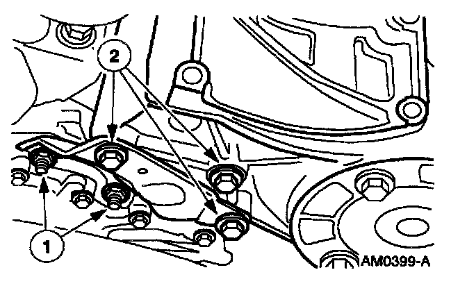 2. Remove the bolts and remove the A/C compressor mounting bracket.