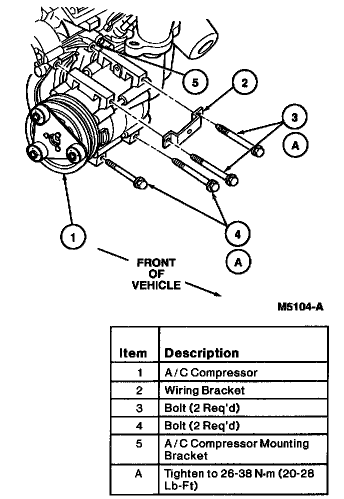 2. Install A/C compressor onto A/C compressor mounting bracket with four bolts and wiring bracket.