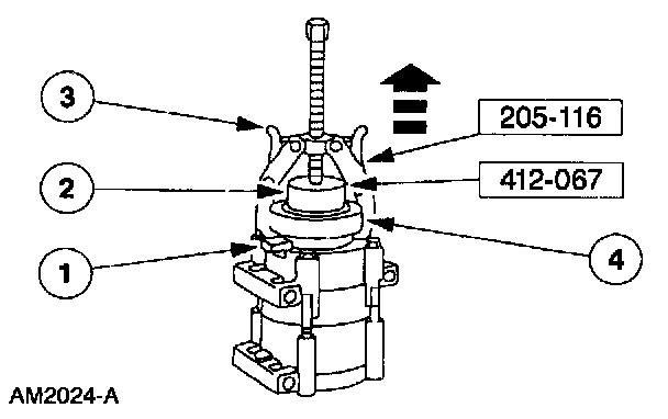 4 Use the 2-Jaw Puller to install the A/C clutch field coil until bottomed completely against the A/C compressor.
